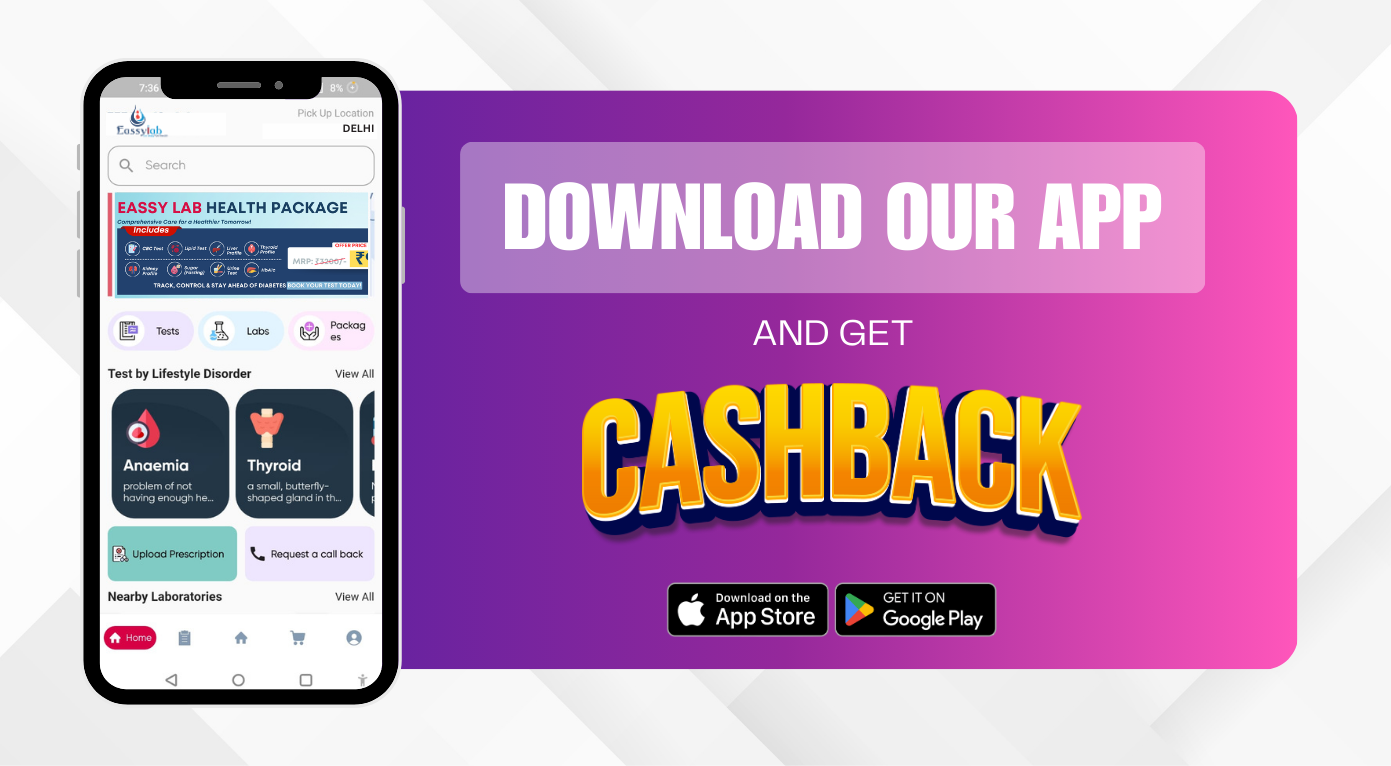 Book Eassy Lab Health Tests and access your smart reports and health trackers anytime anywhere. Now available on both Google Play Store and App Store.