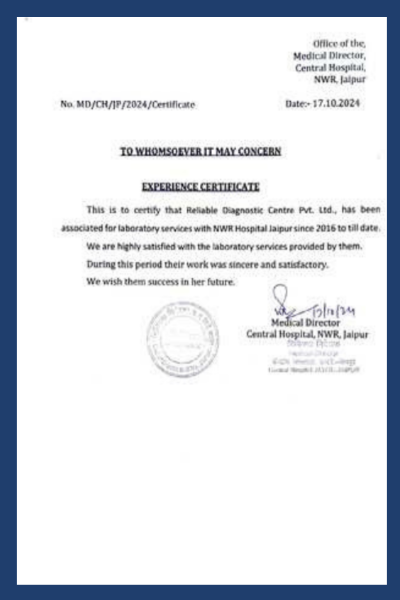 North Western Railway (NWR) is highly satisfied with Reliable's laboratory services, praising their professionalism and timely delivery